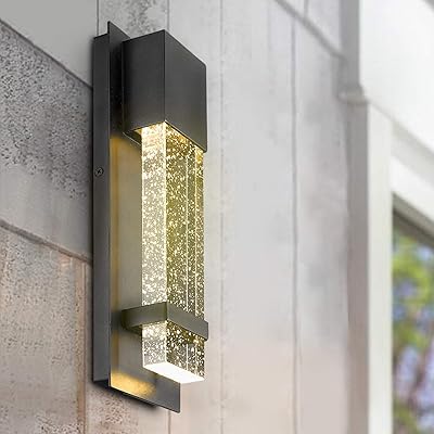 Partphoner led wall sconce, modern porch light with crystal bubble glass, outdoor indoor light fixtures wall mount 10w, 540lm, 3000k for front door, garage, stairway, living room.