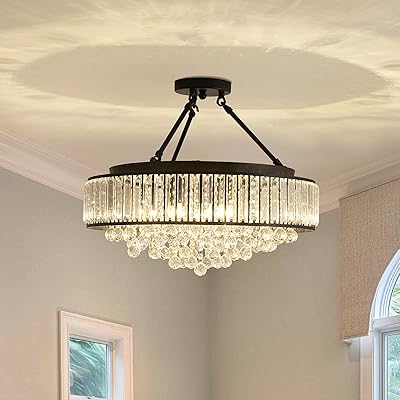 What are crystal ceiling light fixtures? Check out our crystal flush mount light selection for the very best in unique or custom, handmade pieces from our освещение shops. Hallway, dining room, living room, kitchen, bedroom, etc. Install this light in any room to give an elegant look. Semi flush ceiling lights duets drum shade crystal pendant ceiling lights in modern dining room.